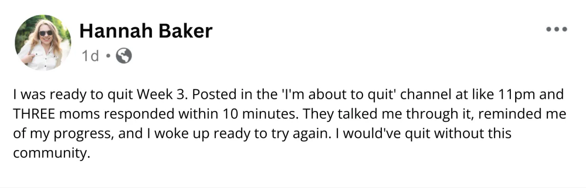 -Post "I want to quit" in #vent-without-fixing and have moms talk you through it
